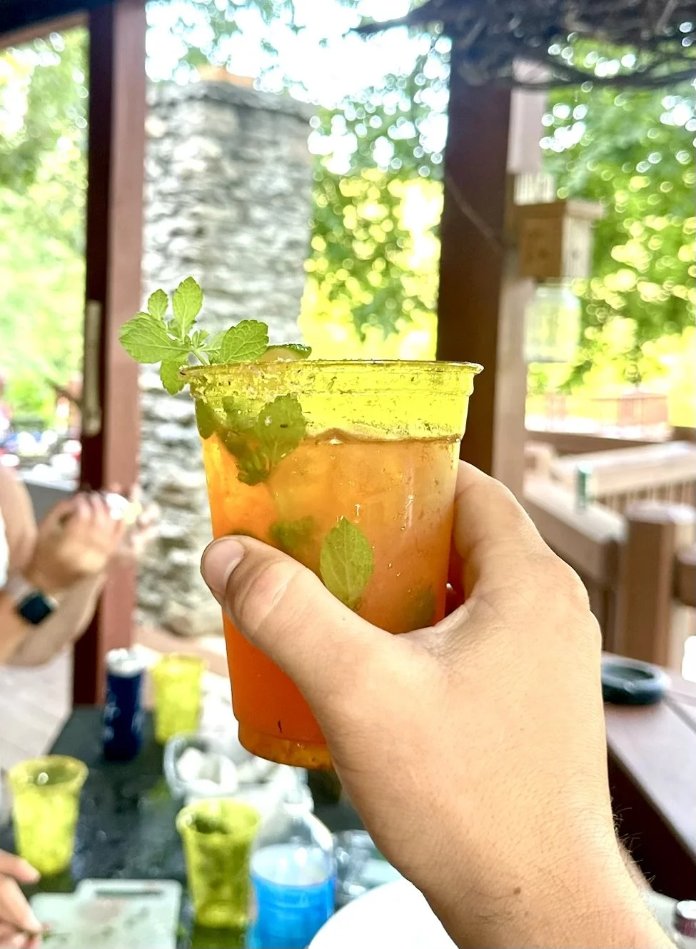 Serve over ice and garnish with lemon balm or mint: